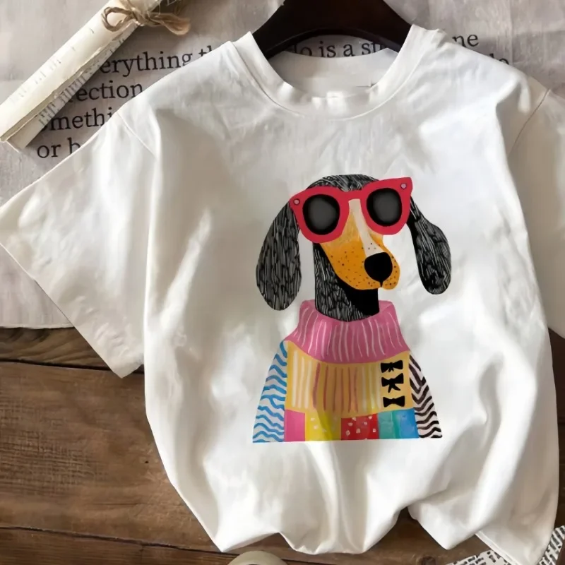 Camiseta de manga corta con estampadmoda animados para mujer, ropa informal versátil para uso diario y al aire libre
